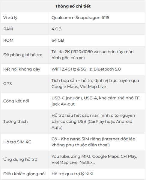 Android Box DCTECH DC B300 mang đến nhiều ưu điểm vượt trội cho người dùng đang muốn nâng cấp xe một cách nhanh chóng, tiện lợi và hiệu quả. Chỉ cần cắm vào cổng USB của xe, thiết bị giúp biến màn hình nguyên bản thành một trung tâm giải trí và hỗ trợ lái xe hiện đại. Người dùng có thể xem YouTube, sử dụng bản đồ thông minh, nghe nhạc trực tuyến, hoặc ra lệnh bằng giọng nói – tất cả đều mượt mà, không cần tháo lắp hay độ chế.