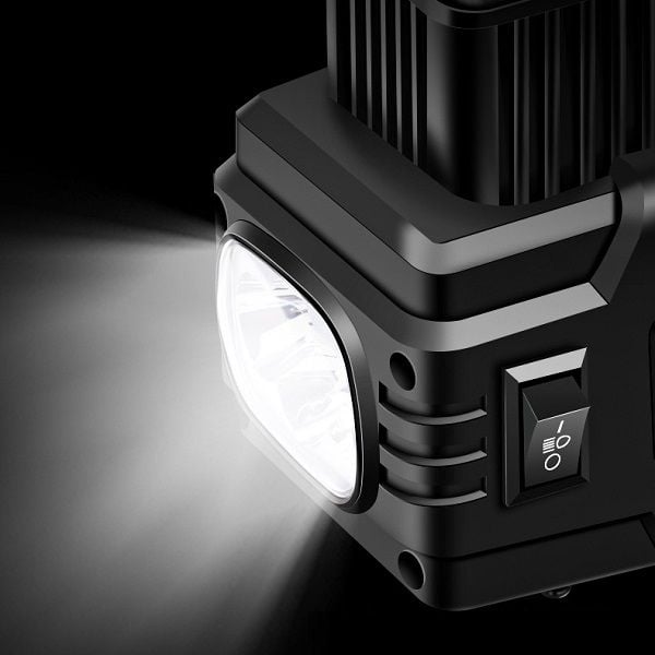 - Bơm hơi mini Máy được trang bị thêm đèn Pin phía trước đầu bơm, giúp các bạn soi hay cứu hộ vào ban đêm rất tiện lợi..